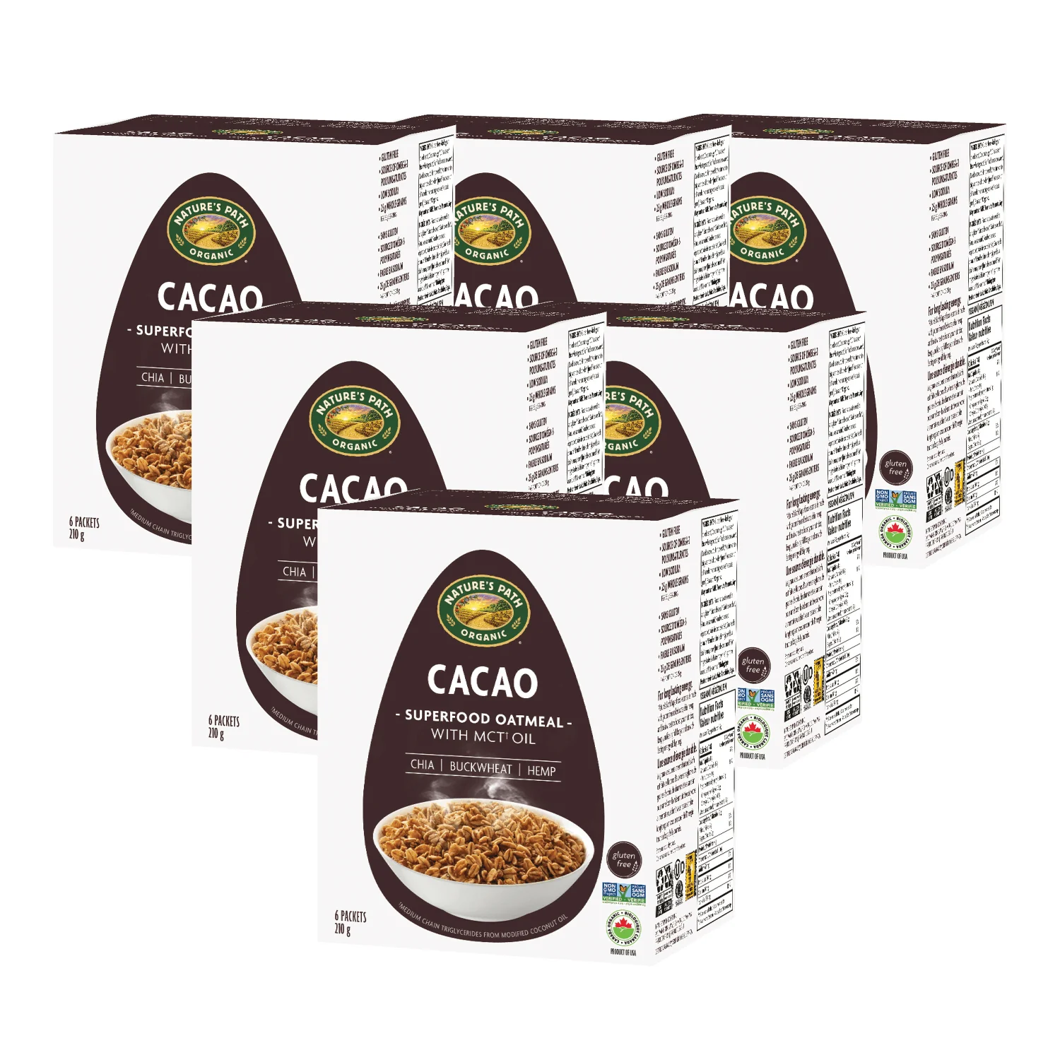 Introducing our new, deliciously rich and creamy Cacao Superfood Oatmeal, boosted with chia, coconut, and MCT oil for the nutrition you need. Made with gluten-free whole grain rolled oats, hemp seeds, and buckwheat, it has a rich and hearty texture, and keeps you feeling full longer with lasting energy. Crafted with whole superfoods that are organic and non-GMO, this oatmeal is a satisfying and nutritious way to start your day.