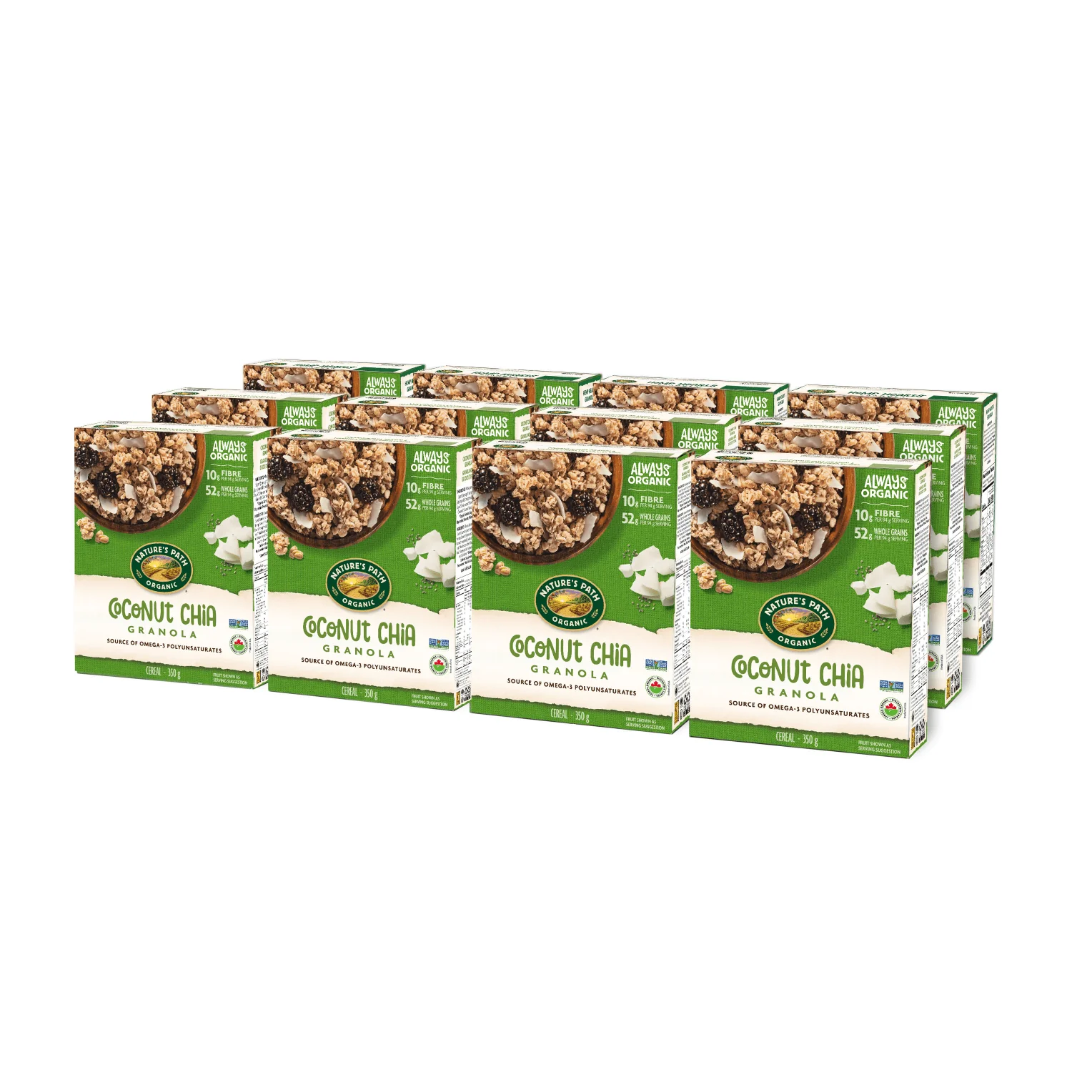 We put together organic whole grain oats, dried coconut, chia seeds, a hint of vanilla, and a touch of natural sweetness for crunchy clusters of delicious granola. Top your smoothie bowl or snack on a handful—you'll get whole grains and fibre to support digestion, and chia seeds for plant-based protein and omega-3 essential fatty acids. A satisfying granola for vegan diets, it's a tasty way to start the day right.