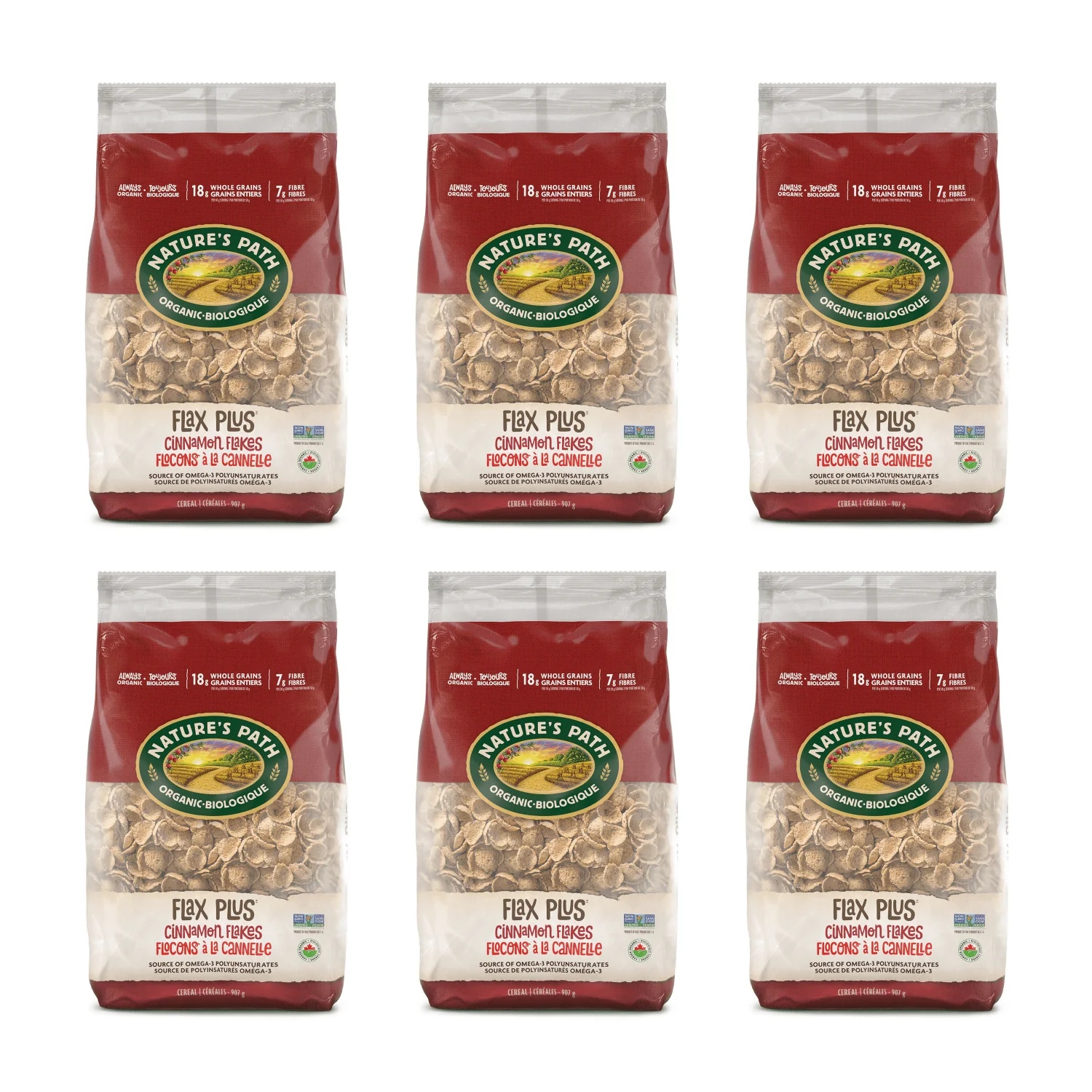 Our Flax Plus Cinnamon Flakes are crunchy, organic cereal flakes, made from whole grains and flax seed, and coated in cinnamon. We're big fans of flax seed, because of ALA Omega-3s that have been shown to support heart health. And with 10g whole grains and 4g of fibre per serving, this delicious cereal helps you start your day right. When you choose to eat organic, you're choosing health, for both you and the planet.